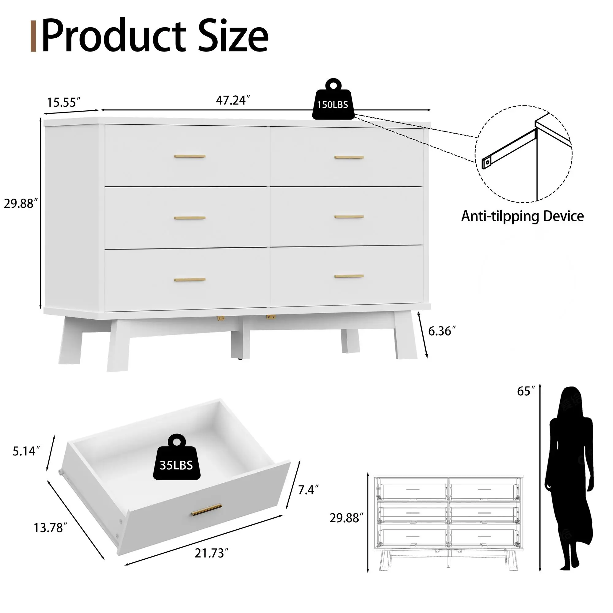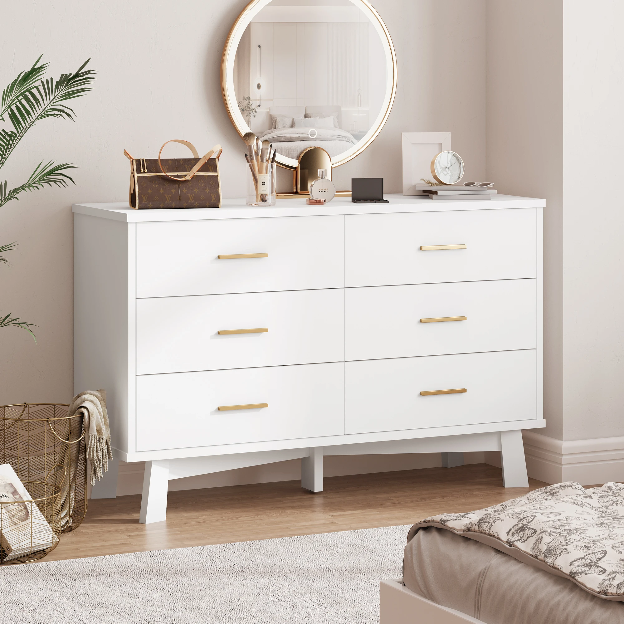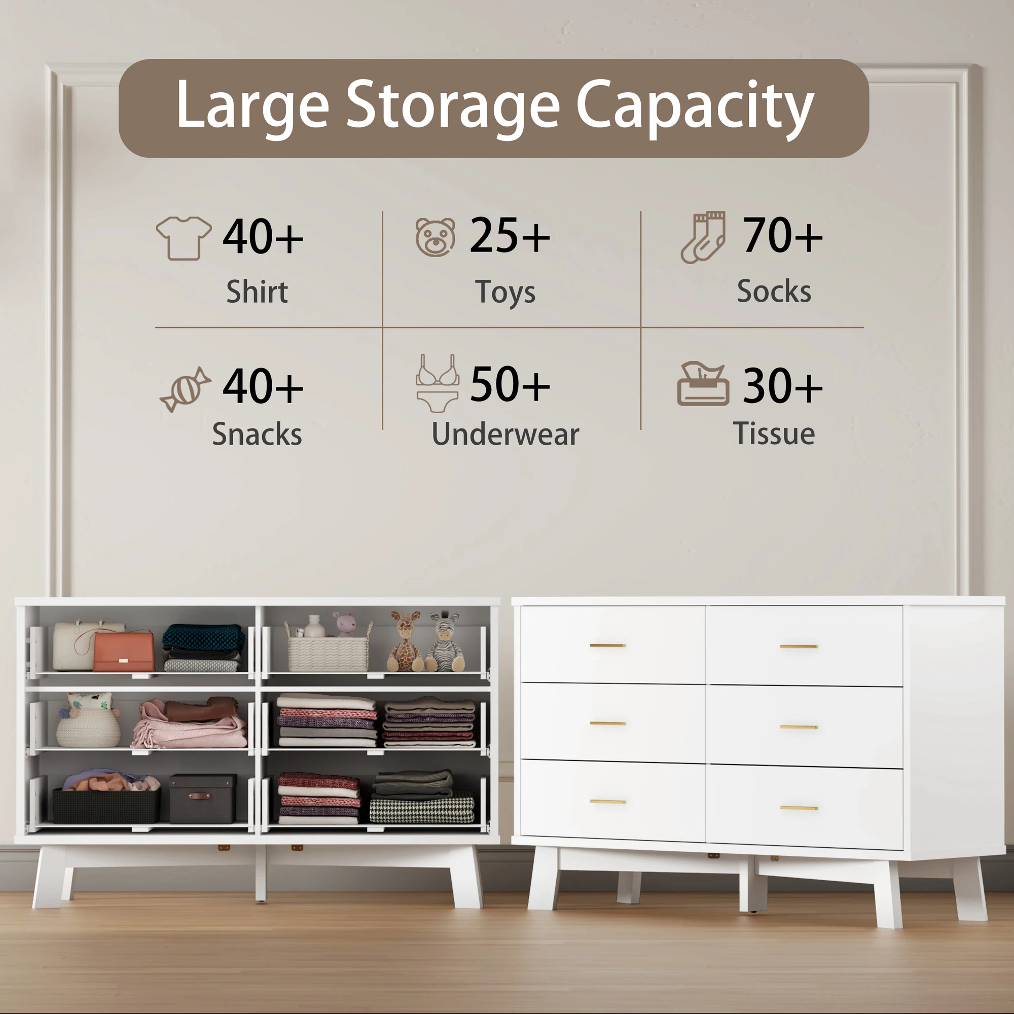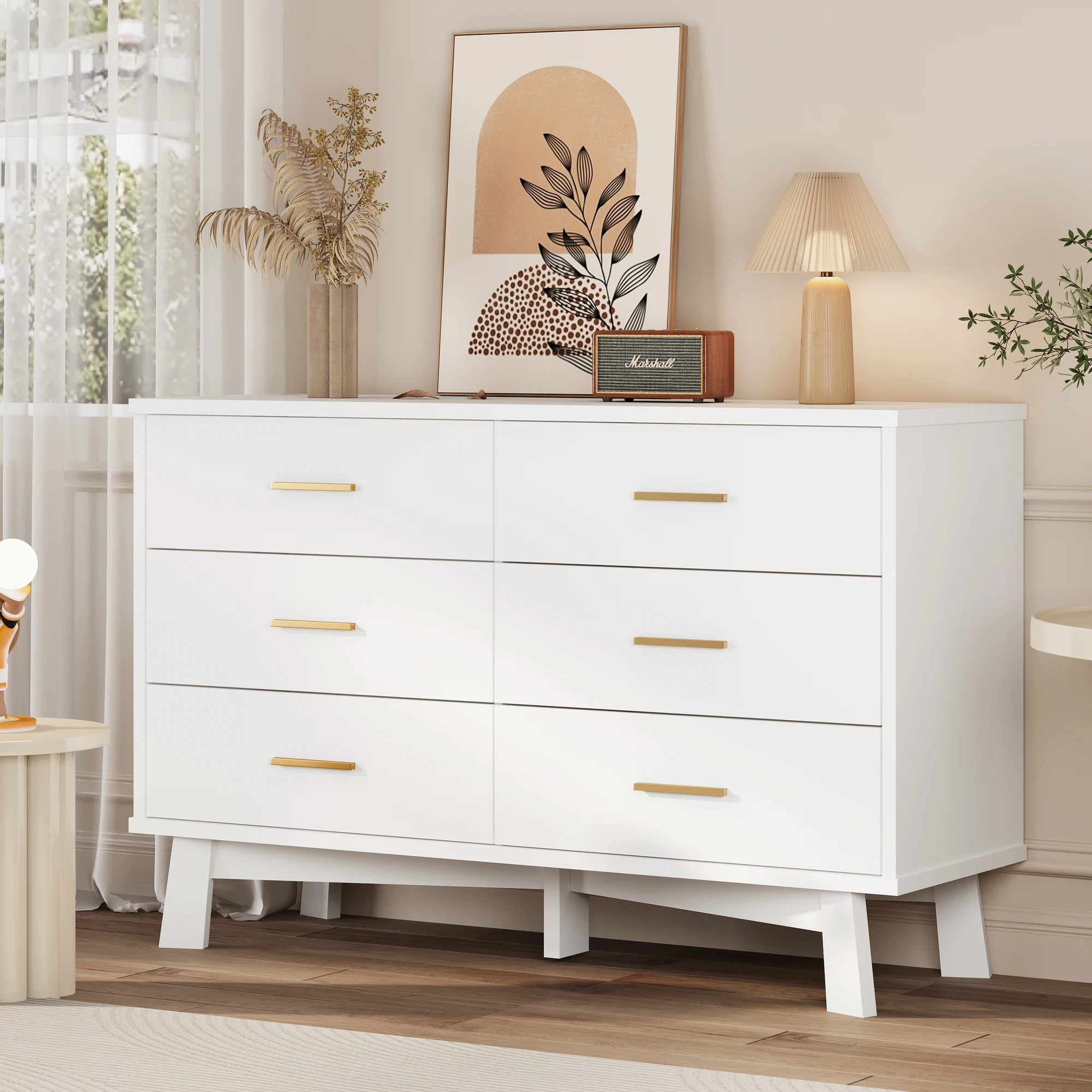 This 6-drawer wide dresser combines modern design with practical storage for any room. The X-shaped sturdy base ensures stability and durability. Six spacious drawers provide ample storage for clothing, linens, and personal items. Perfect for bedrooms, living rooms, or hallways needing functional storage solutions. Crafted from high-quality materials for long-lasting use and support. The wide surface offers extra space for décor, lamps, or essentials. Sleek, contemporary design complements a variety of interior styles. Smooth-glide drawers allow easy access and organization. Easy assembly with included instructions ensures quick setup. Enhance your home with this stylish, functional, and versatile 6-drawer dresser.