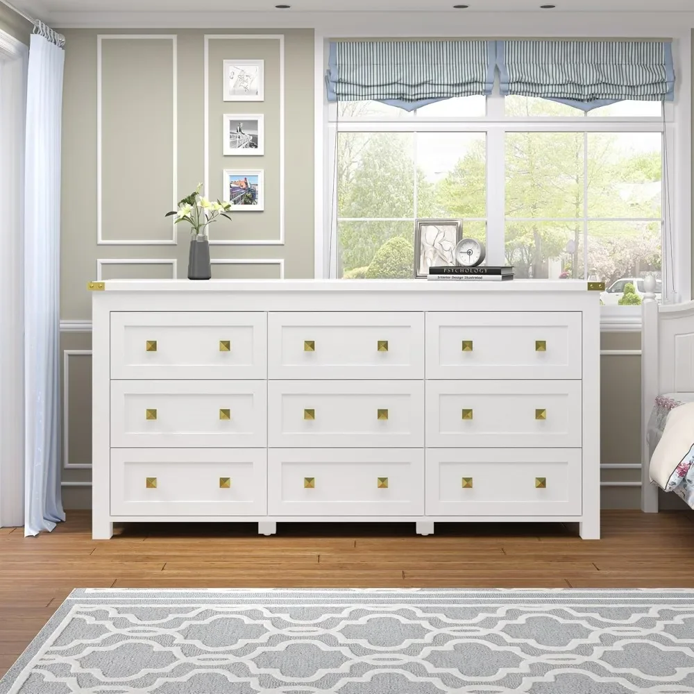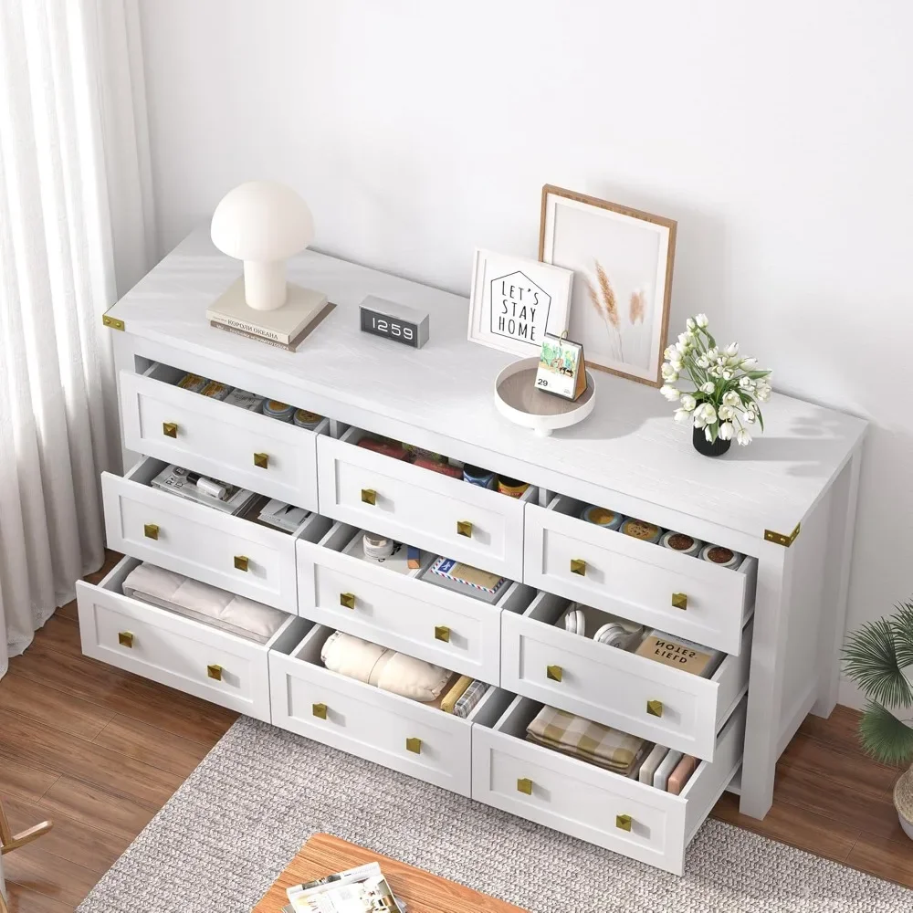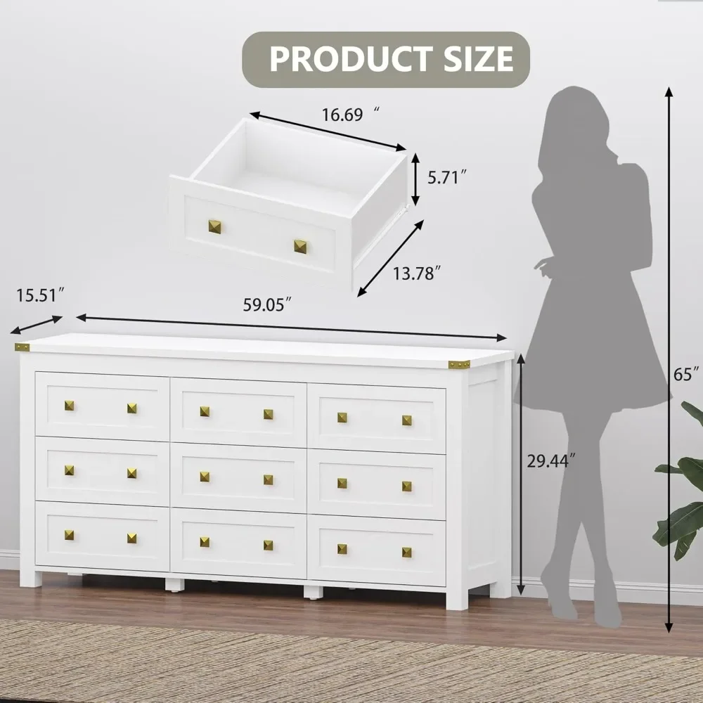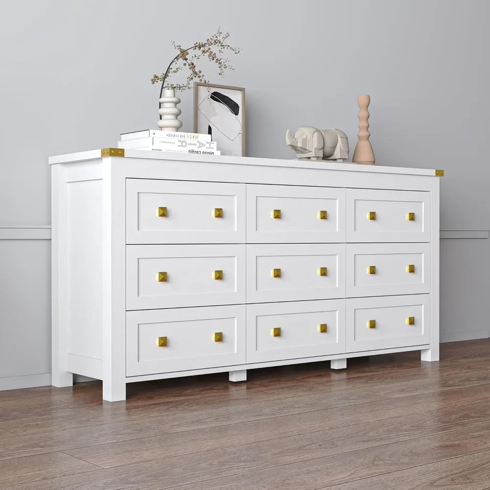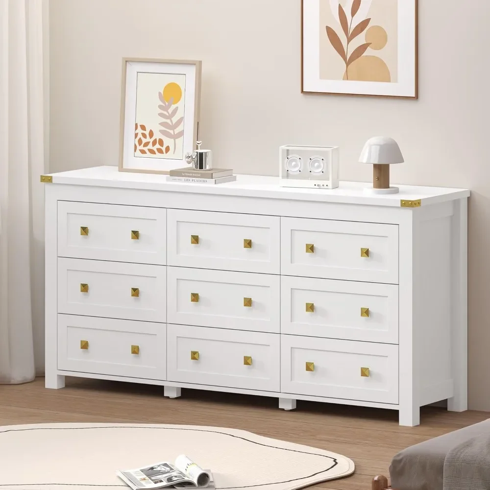 This 9-drawer modern dresser combines style, storage, and versatility for any room. Its wide design provides ample space for clothing, linens, and personal items. Crafted from durable wood for long-lasting stability and support. Smooth-glide drawers allow for easy organization and access. Perfect for bedrooms, closets, living rooms, or entryways. The sleek, contemporary design complements a variety of décor styles. Sturdy construction ensures durability and everyday use. The top surface can display décor, lamps, or essential items. Easy to assemble with included instructions for quick setup. Enhance your home with this functional, stylish, and spacious 9-drawer dresser.