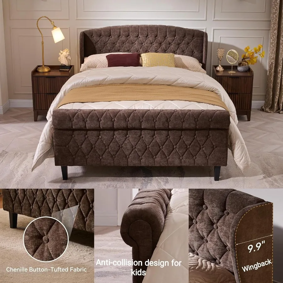 This upholstered queen sleigh bed combines timeless elegance with durable construction. The vintage brown finish adds a warm, classic touch to any bedroom décor. A gracefully curved headboard enhances the traditional sleigh silhouette. The soft upholstered design offers comfort and style for restful nights. The sturdy platform frame provides excellent mattress support without the need for a box spring. Crafted with high-quality materials, it ensures lasting stability and reliability. Perfect for both modern and traditional bedroom settings. Easy to assemble and designed for long-term use. The sleek profile and rich texture create a cozy, inviting atmosphere. Upgrade your bedroom with this elegant and comfortable queen sleigh bed.